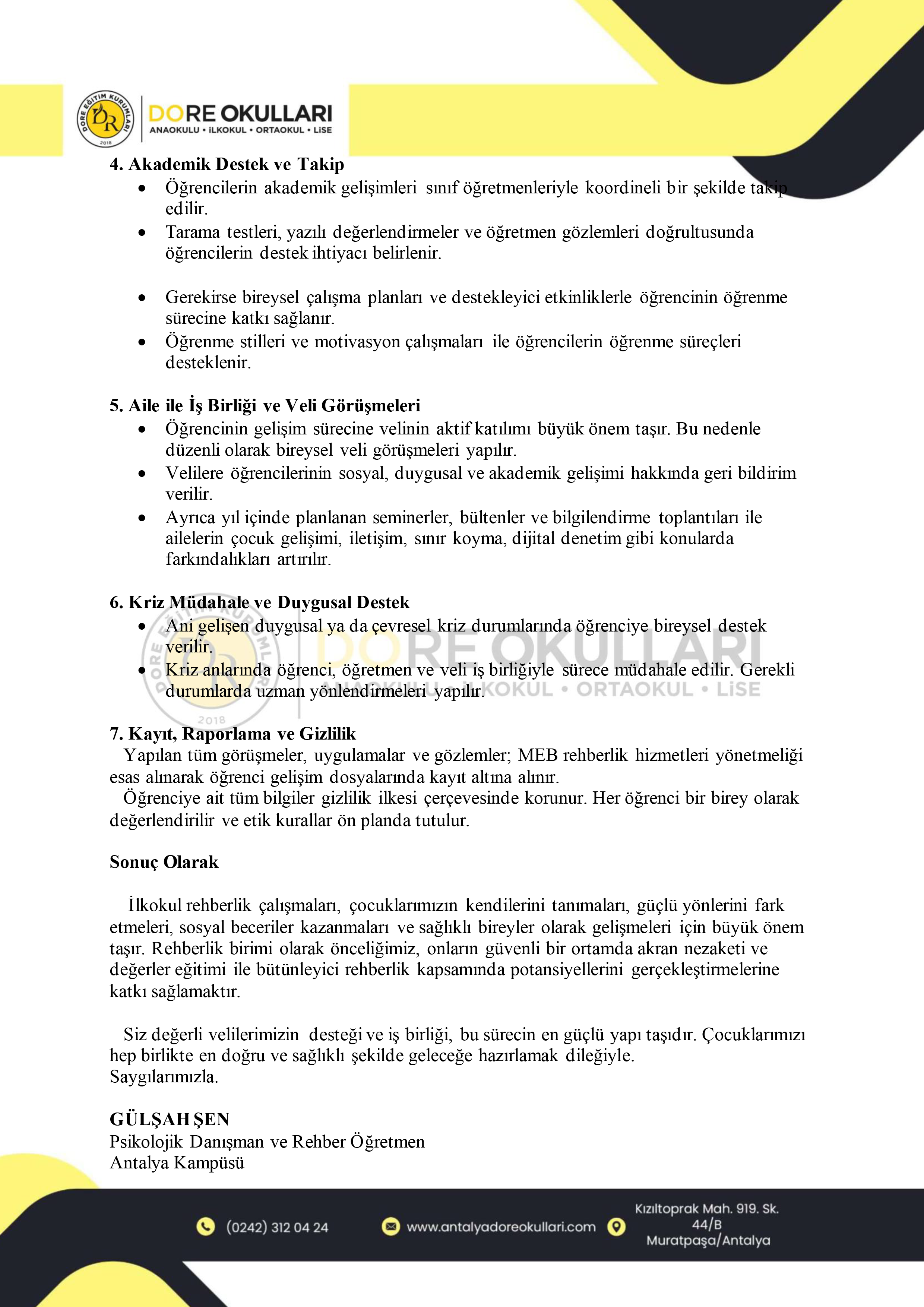 GÜLŞAH ŞEN İLKOKUL REHBERLİK MEKTUBU