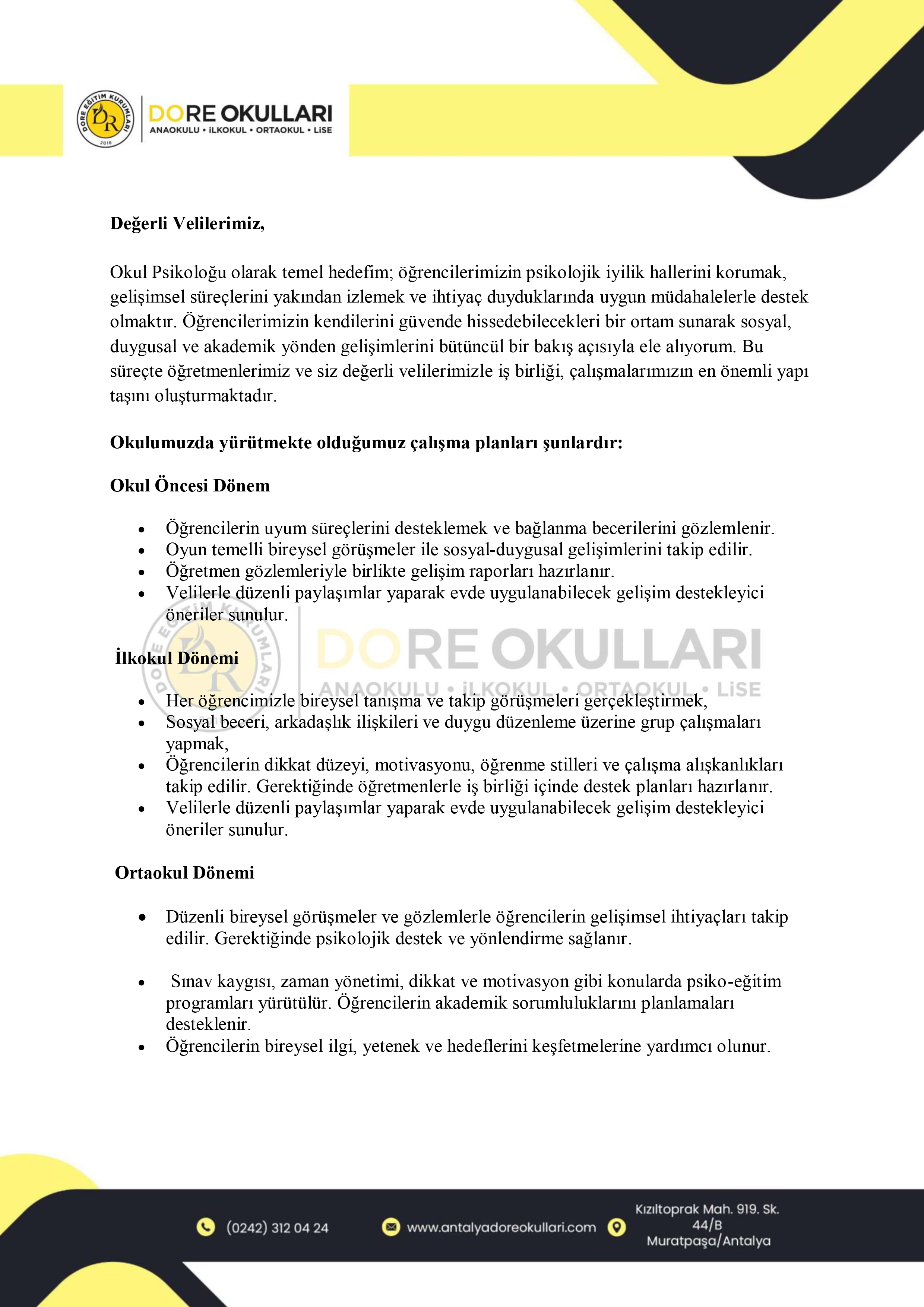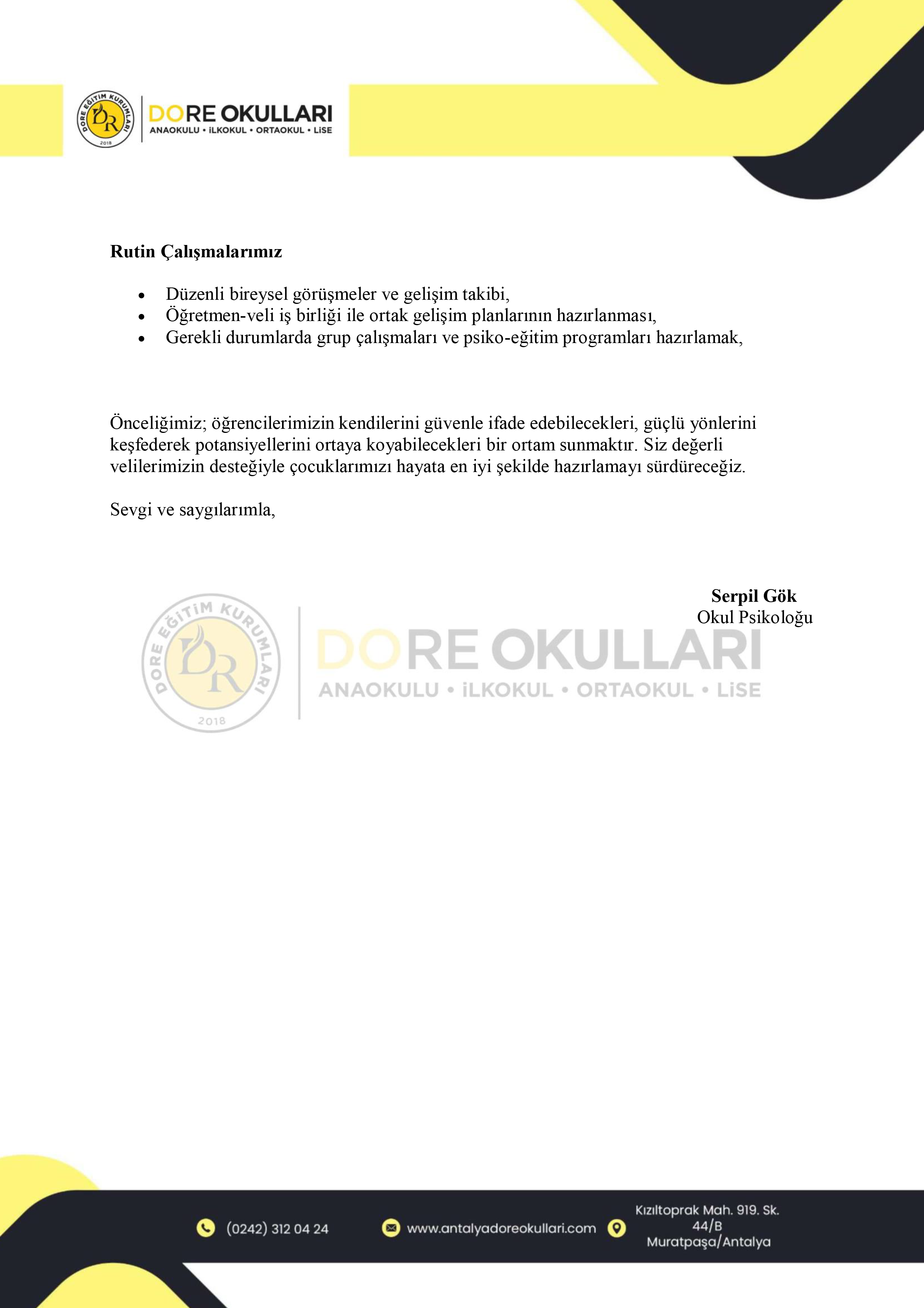 SERPİL GÖK OKUL PSİKOLOĞU MEKTUBU